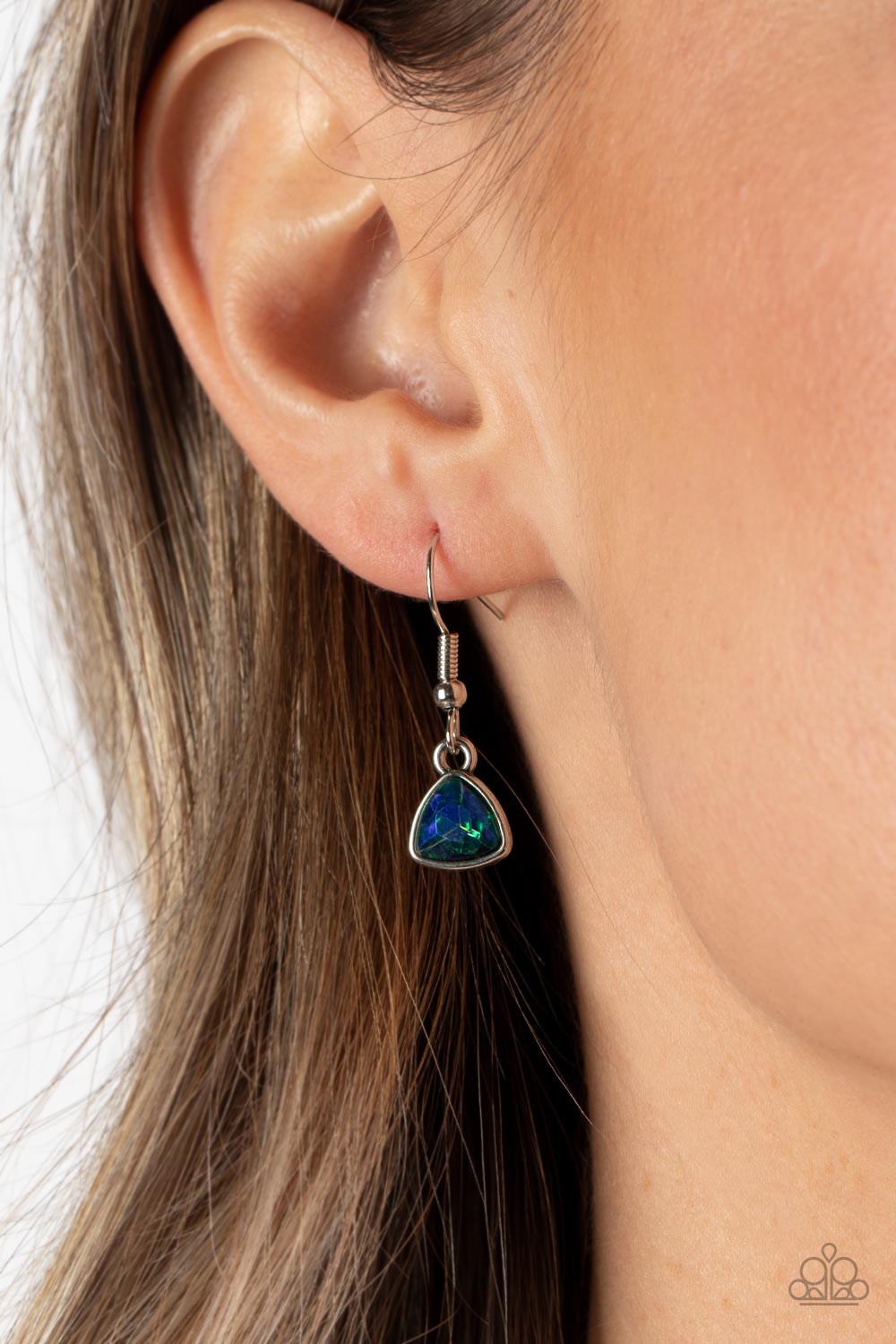 Featuring a green UV finish, a faceted asymmetrical blue gem is encased in a sleek silver frame at the bottom of a silver popcorn chain for a stellar fashion. Features an adjustable clasp closure.