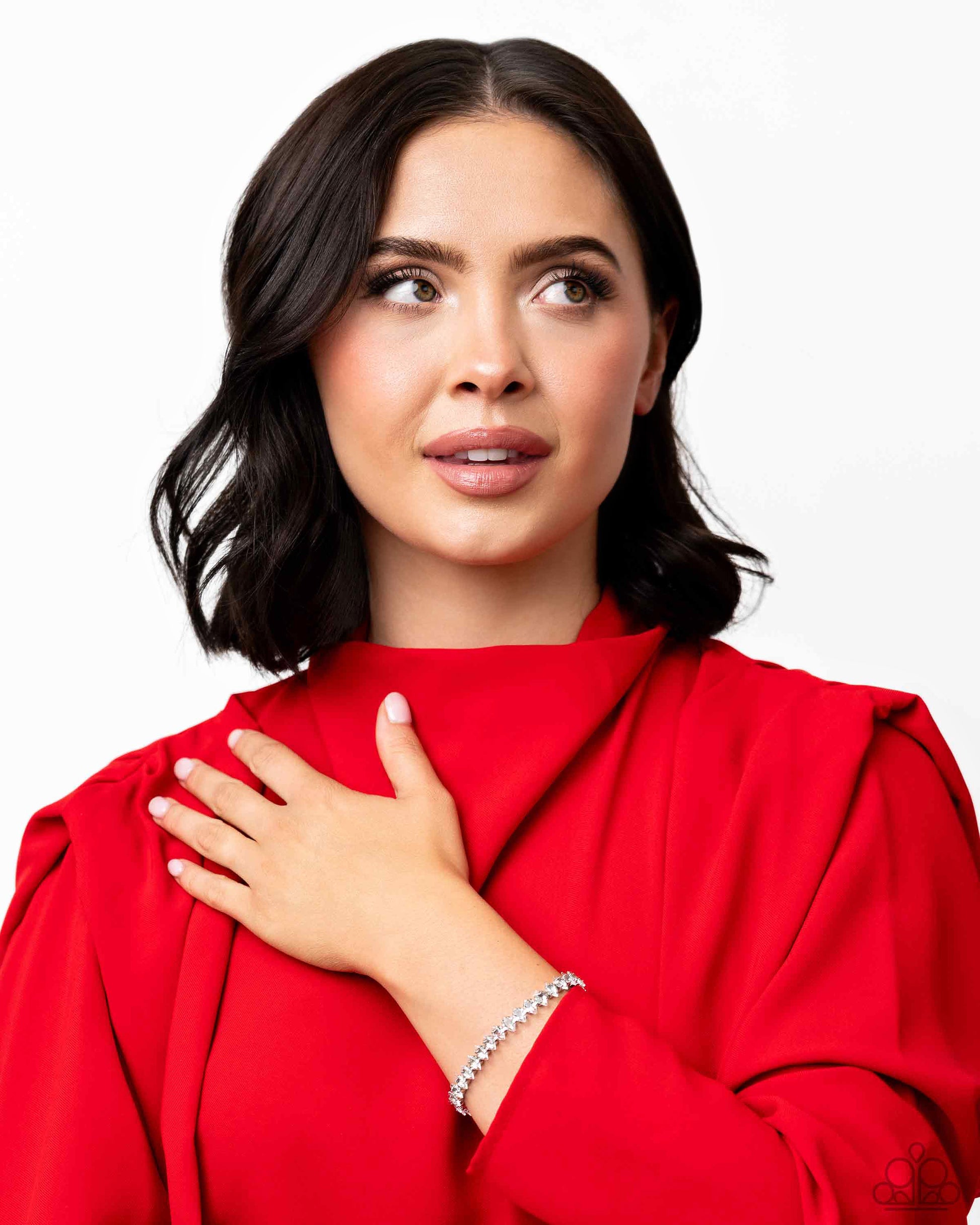Featuring silver square fittings, crystal-like marquise-cut gems delicately link into a glamorous, refined centerpiece around the wrist. Features an adjustable clasp closure.