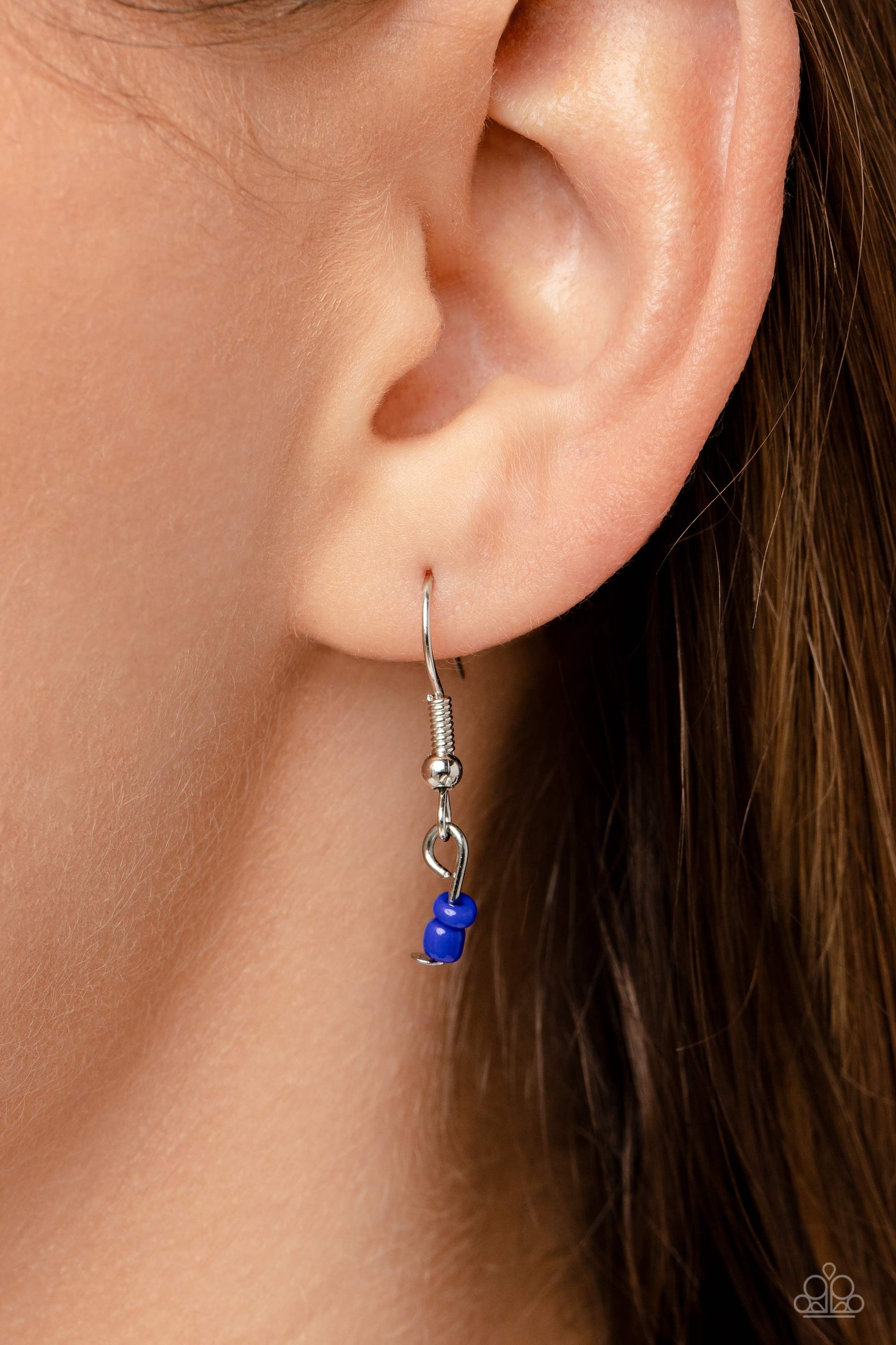 Infused along a dainty silver chain, duos of blue seed beads alternate with warped, layered silver discs to make a colorful, sand-dollar-like statement down the neckline. Features an adjustable clasp closure.