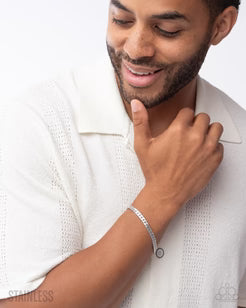 Featuring stainless steel, a thick strand of silver curb link chain is wrapped around the wrist for a cutting-edge, classic look. Features an adjustable clasp closure.